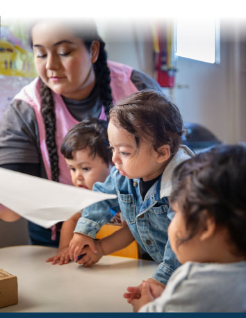 Los educadores infantiles desempeñan un papel importante a la hora de crear un entorno que invite y ofrezca oportunidades a los bebés y niños pequeños para que participen en interacciones enriquecedoras con otros niños y adultos. Un entorno de aprendizaje que ofrezca a los niños oportunidades para moverse, les dé acceso a una variedad de materiales y áreas y fomente la interacción con objetos y personas favorece el aprendizaje y el desarrollo de los niños. El entorno y los materiales de aprendizaje y cuidado de un niño son como un estudio para un artista o un laboratorio para un científico.