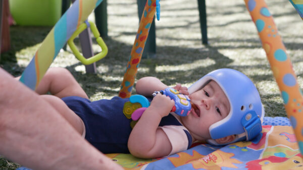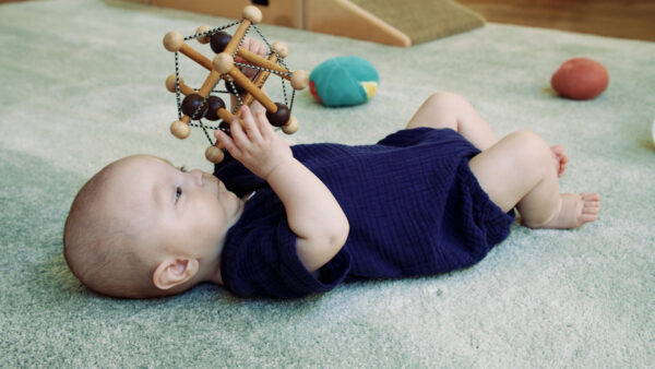 - 顺着照顾者的目光看向婴儿健身地垫后,开始在其中玩耍。