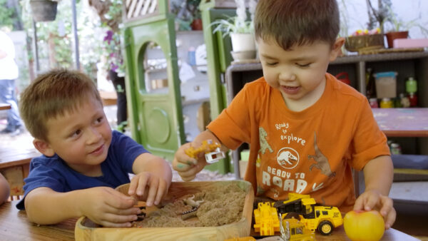 - 当照顾者对孩子说: “我们一起来挖洞, 你有两把铲子。请给你的朋友一把” 时, 孩子将沙箱里的一把铲子递给另一个孩子。