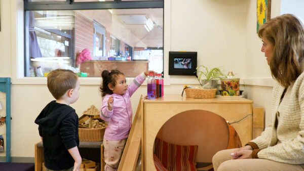 儿童与照顾者互动,以达成简单目标。在照顾者的支持下, 他们有时能够与其他儿童协调地一起玩耍。