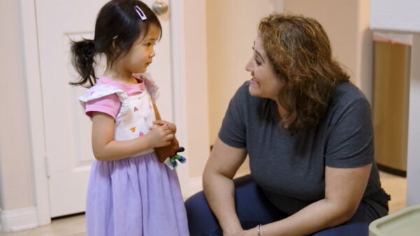 - 到达托儿环境时,用家庭语言与家人道别, 然后开始与另一个孩子玩耍,并用他们共同的家庭语言交流。