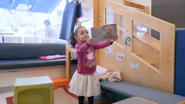 - 当照顾教育工作者用西班牙语说:“午睡前是阅读时间。你能选一本书吗?” 时, 孩子便走向阅读区。