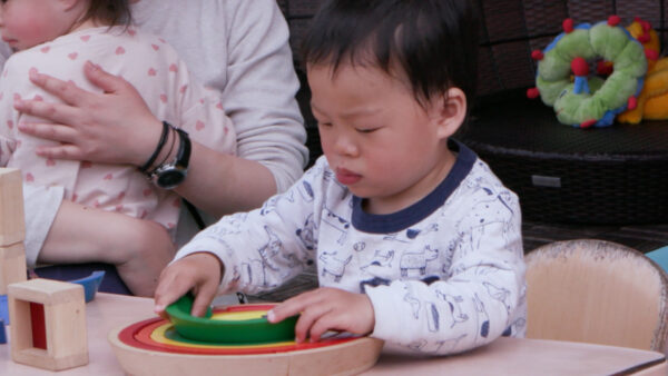 - 花时间重新搭建倒塌的积木结构,当照顾者试图帮忙时,他们用粤语回应, “唔驶! 我自己”。
