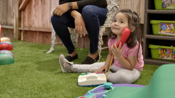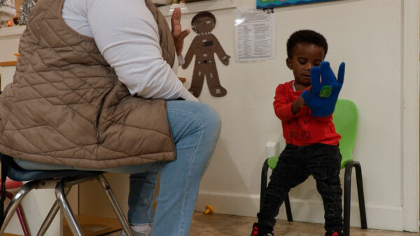 - 在照顧者用西班牙語說「 我們要出去,你的鞋子在哪裡? 」 兒童移向鞋櫃。