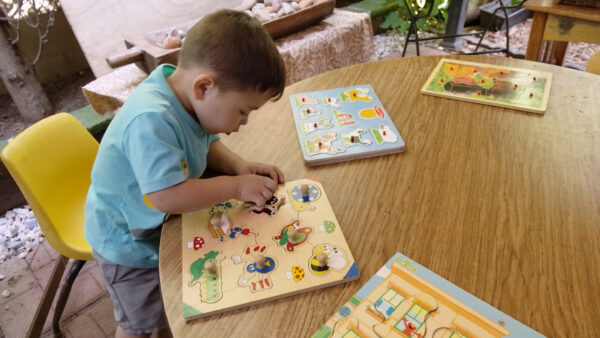 兒童表現出對物體在空間中的位置的理解,並透過反覆試驗來發現物體或自己的身體如何在空間中移動與適應。